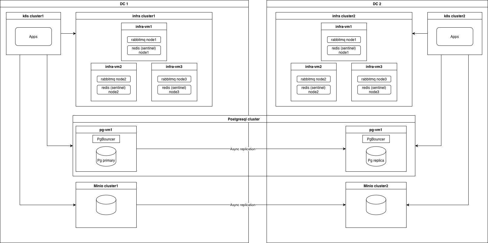 2 DC (Active / Passive) + PostgreSQL standby cluster