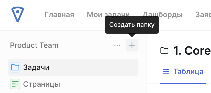 Если пространство не содержит папок, то на открывшейся странице нажмите кнопку Создать папку. Если пространство содержит ранее созданные папки, нажмите кнопку Добавить рядом с названием пространства.