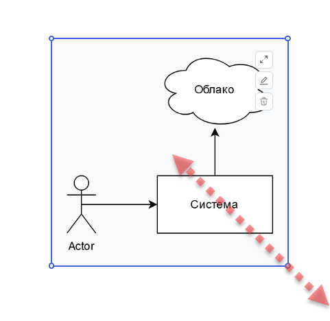 Размер объектов draw.io, вставленных в тексты страниц и описаний, можно изменять. Это позволяет улучшить восприятие и читаемость включенных в текст схем и диаграмм.