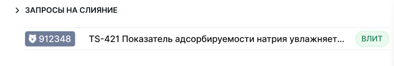 При наличии связей в карточке задачи отображается блок Запрос на слияние. В секции отображается список запросов с типом провайдера, именем запроса, его номером и статусом. На соответствующую сущность можно перейти, нажав на ее название в блоке .