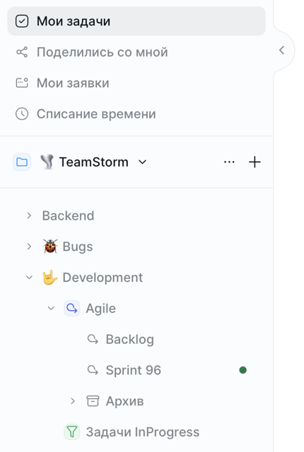 При последующем переходе в эти разделы будет открываться последний посещенный элемент (папка, страница, запрос, спринт и т. д.).