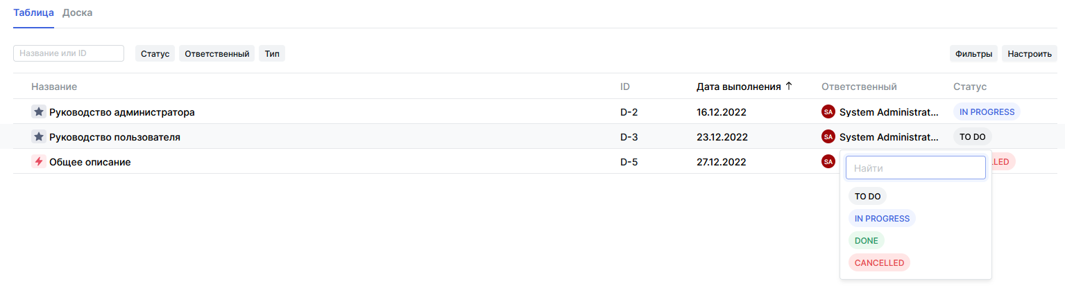 В представлении типа «Доска» есть возможность изменять ответственного за выполнение задачи.