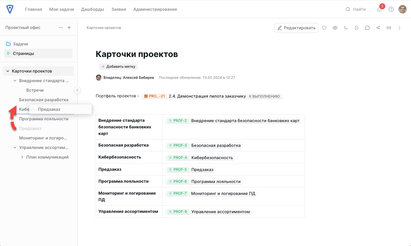 Также вы можете изменять порядок страниц на боковой панели, чтобы организовать логичную и удобную для навигации структуру.
